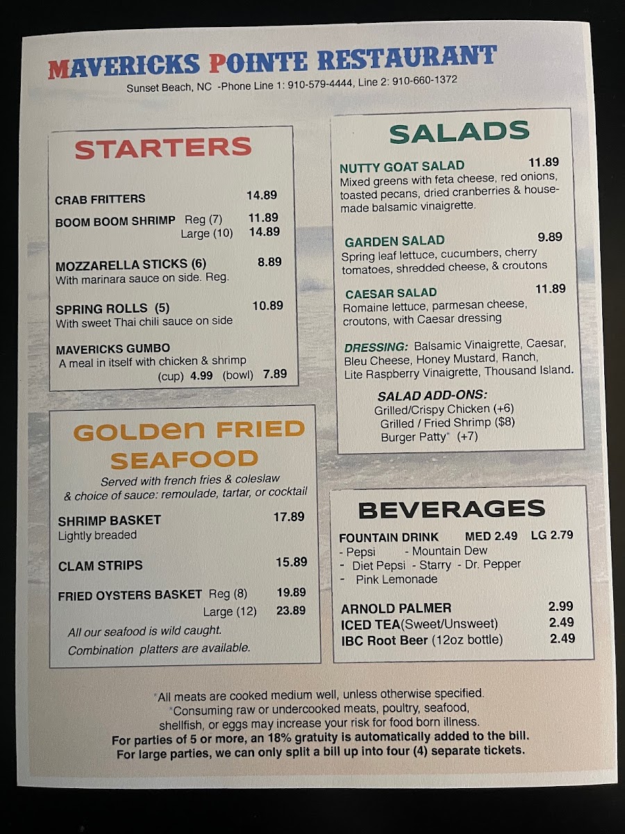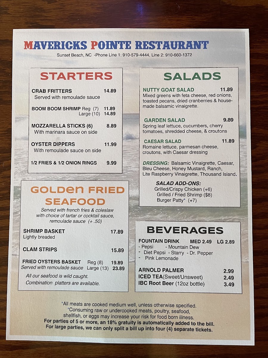 Welcome to Mavericks Pointe, a must-visit dining destination located at 307 Sunset Blvd N, Sunset Beach, NC. This vibrant sports bar expertly combines fantastic food with an electric atmosphere. Their menu offers a delightful selection that caters to various tastes, featuring crispy Chicken Wings and delicious Chicken Tenders along with heartier options like the Beef Brisket Sandwich and mouth-watering Crab Cakes.